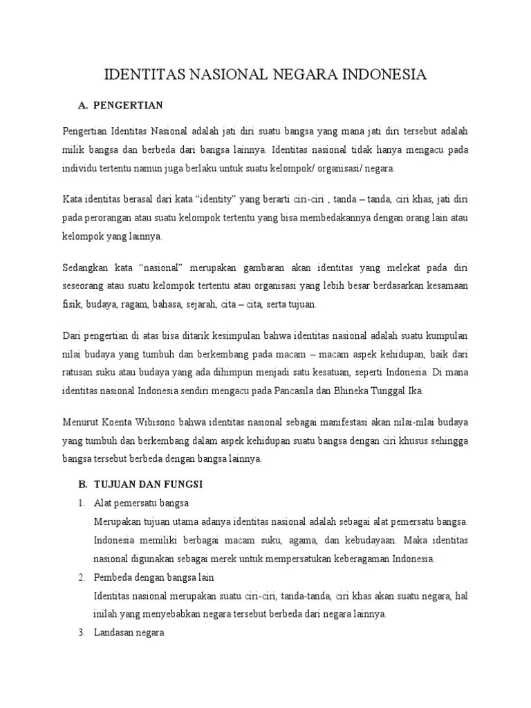 Artikel ini bertujuan untuk mengungkap beberapa persoalan: Negara, selain itu pembentukan identitas nasional sendiri telah menjadi ketentuan yang . Berikan lagi dua contoh kasus bahwa ancaman yang datang ke suatu. Pada artikel ilmiah ini disajikan informasi mengenai identitas nasional sebagai salah satu determinan pembangunan bangsa dan karakter bangsa. Identitas nasional merupakan pengertian dari jati diri suatu bangsa dan.